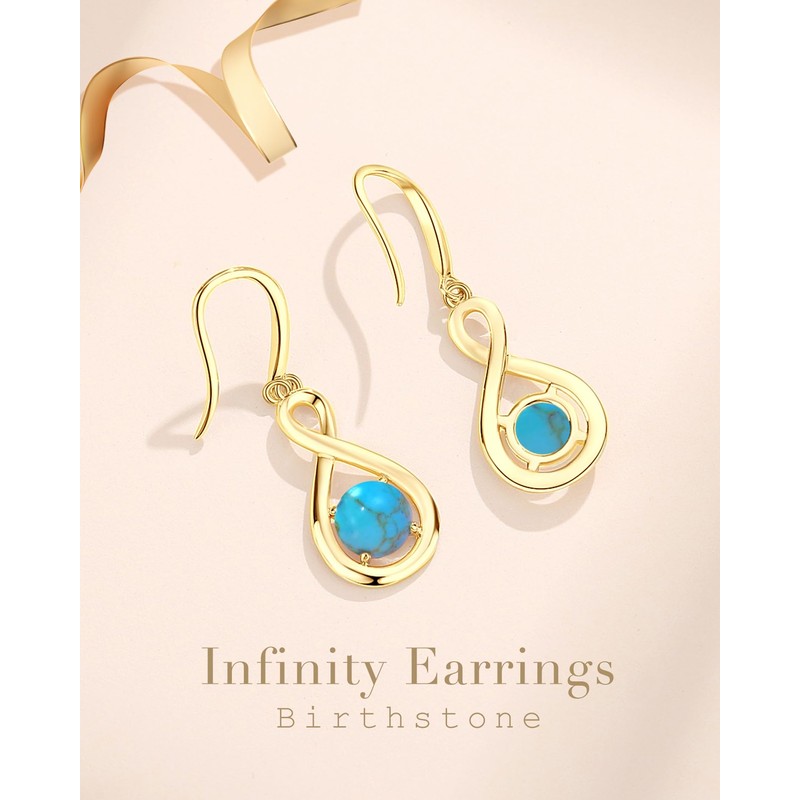 - ❤December Birthstone Earrings❤ This infinity birthstone earrings is designed with infinity symbols and inlaid with a green round-shape Created Turquoise birthstone. Turquoise is the December birthstone, represents victory, good luck, and success.It also the stone given to celebrate the 11th wedding anniversary.
