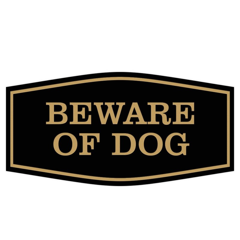 Fancy Beware of Dog Sign (Black/Gold) - Medium