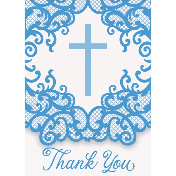 Fancy Blue Cross "Thank You" Notes (Pack of 8) - Elegant Party Essential for a Blessed Celebration