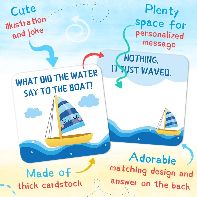 - Unique Design: Every card is carefully designed with cute illustrations and jokes, which includes What do planets like to read? What did 0 say to 8? What did the water say to the boat? and more.