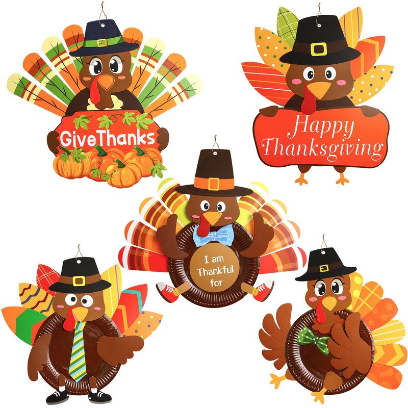 FANCY LAND Thanksgiving Turkey Craft Kits Make A Turkey Crafts for Kids Door Hanging Ornament Party Favors Supplies 5 Set