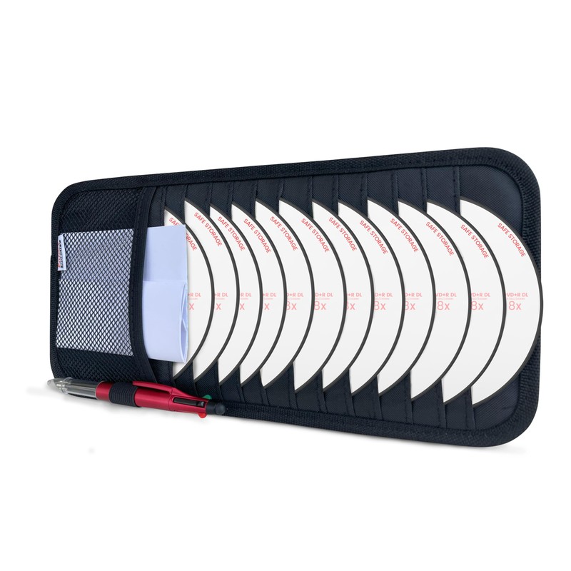 Fancy Mobility CD Case Holder for Car - Sun Visor Organizer for 12 CD’s/Dvd’s, 1 Mesh Pocket & 1 Horizontal Pen Holder - Safe, Ergonomic Design (Black)