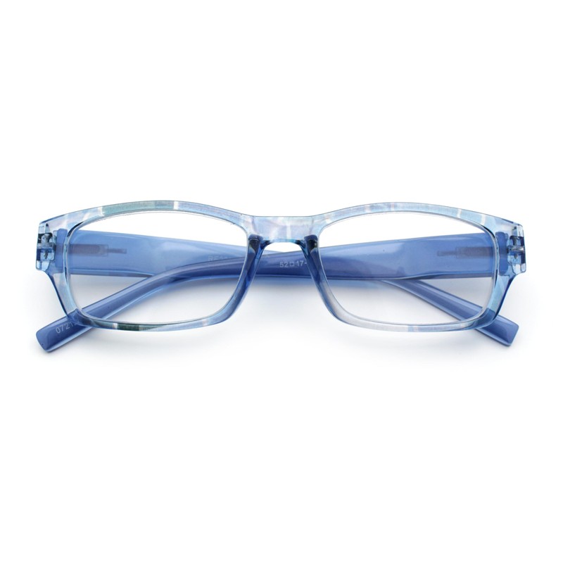 Fancy Narrow Rectangle Spring Hinge Light Weight Plastic Reading Glasses Blue +1.0