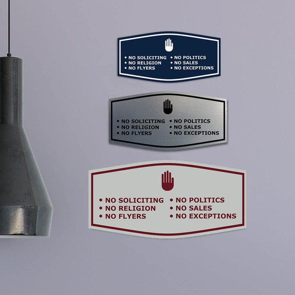 Fancy No Soliciting No Politics No Religion No Sales No Flyers No Exceptions Sign (Brushed Gold) - Small 2 Pack