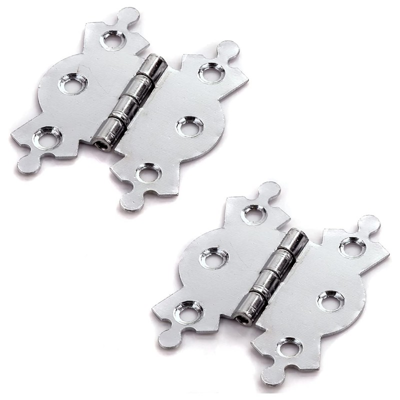- PACK CONTAIN - 2 Pieces of Decorative Polished Chrome Butterfly Hinges with matching screws. Sold in Pairs. Length: 50mm, Width (Open): 36mm and Width (Closed): 20mm.
