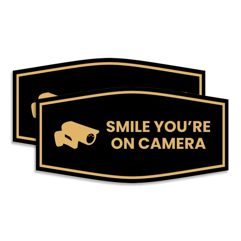 Fancy Smile You're On Camera Sign (Black Gold) - Large (2 Pack)