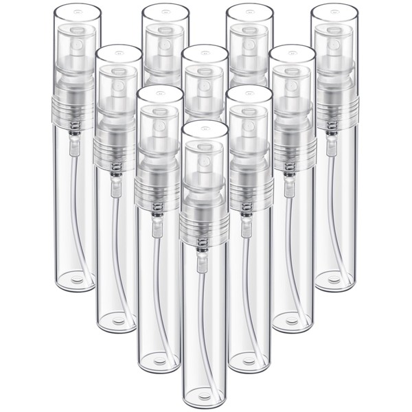 - Package Included: 10pcs 5ml (0.16oz) mini clear plastic spray bottle empty. Note: In order to open the top of the bottle, just pull them upwards or push towards the side and then they will pop off. Don't need unscrew them.