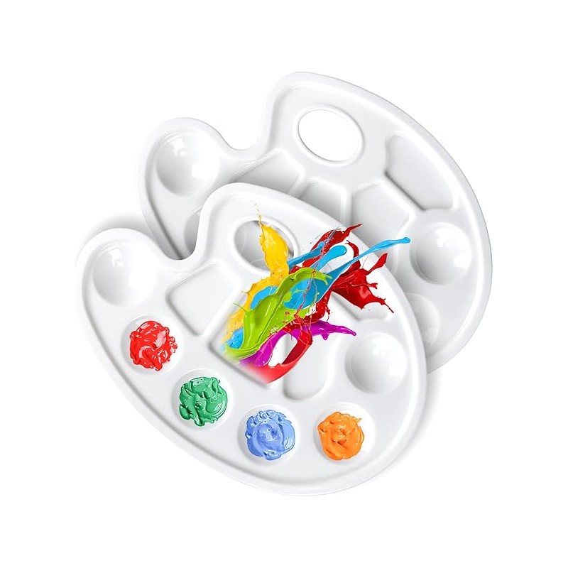 FANDAMEI Oval Paint Palette Tray, Plastic Paint Tray Palette, Painting Palette, Paint Tray Palettes Paint Pallets with Thumb Hole for Adults & Kids, for Painting or DIY Craft Class, White, 2 PCS