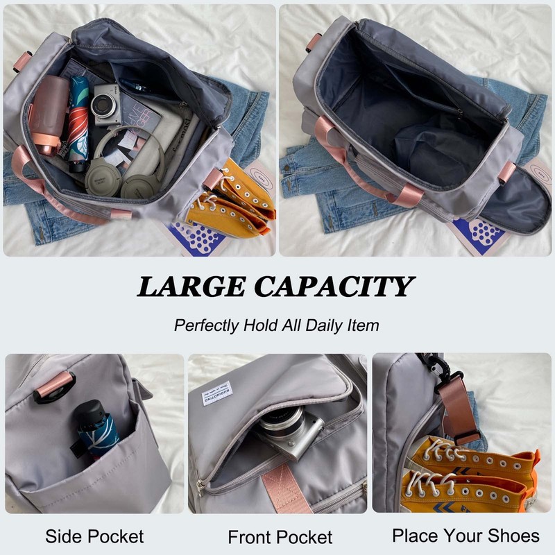 - 【Overnight Weekend Travel Bag】The waterproof travel bag tote is made of lightweight, waterproof, wear-resistant and high-density nylon fabric, which can help you to separate dry with wet items and more convenient for daily travel and fitness. High quality fine stitching is used at the handle and shoulder strap connections. The amazing combination ensures a strong load bearing. Your ideal overnight weekend boarding bag for business or personal travel.