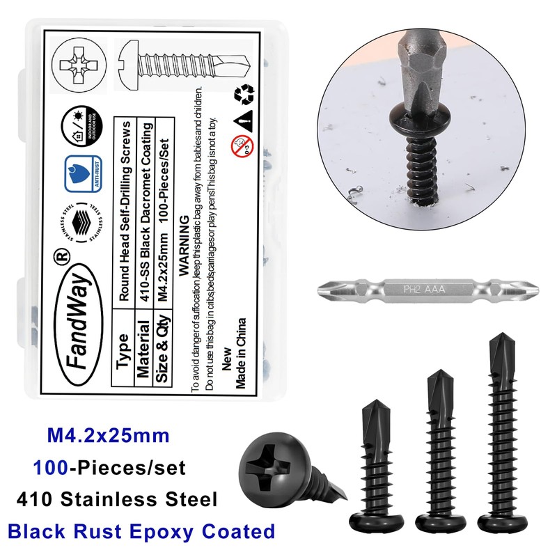 - 🔩【How to choose the size 】: Match screw length to material thickness,M4.2x25mm. (25-32-38mm screws for 3-6mm steel plates)Although drill-tail screws can be used in a variety of materials, their self-drilling and self-tapping capabilities might be limited when dealing with extremely hard or overly dense materials. It is necessary to assess the material properties beforehand.