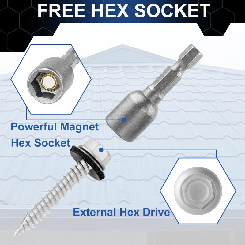 - 🔩【PACKAGE INCLUDES】: You will get a box for good storage, including 100pcs M6.3x25mm Hex Head Metal Roofing Screws with 16mm EPDM Washer and a Hex Socket Bit.Backed by FandWay unparalleled customer service that goes above and beyond to ensure your satisfaction.