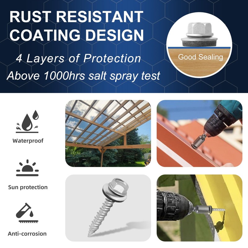 3 - ✅ Durable Washer:Each screw comes with a high-quality EPDM Washer, which aims to enhance the waterproof ability of the screws during use. Includes precision hex dirve bit!