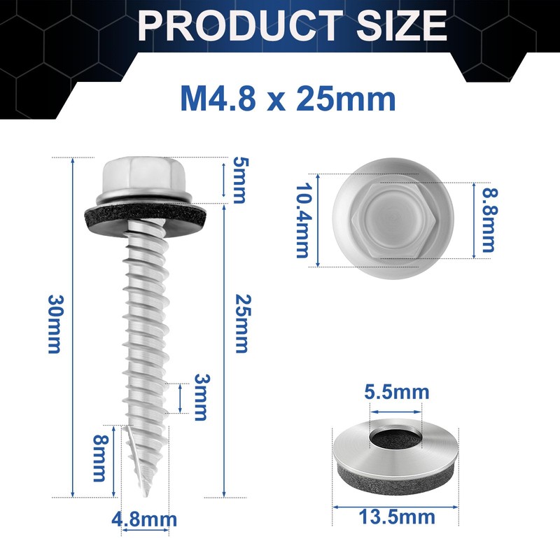 - 🔩【PACKAGE INCLUDES】: You will get a box for good storage, including 120pcs M4.8x25mm Hex Head Metal Roofing Screws with 16mm EPDM Washer and a Hex Socket Bit.Backed by FandWay unparalleled customer service that goes above and beyond to ensure your satisfaction.
