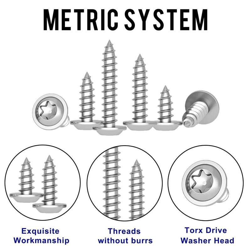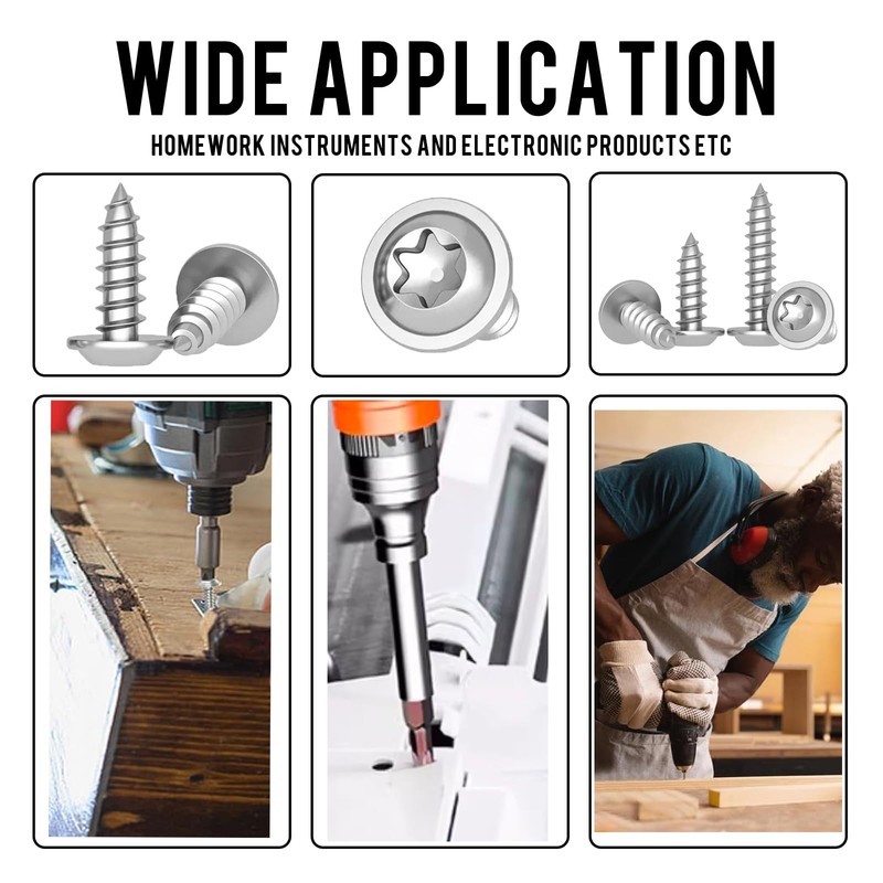 - Premium 304 stainless steel construction: made of high-strength 304 stainless steel, these screws offer excellent rust and corrosion resistance. They resist damp, high-temperature and harsh environments, ensuring long-lasting durability without rusting.