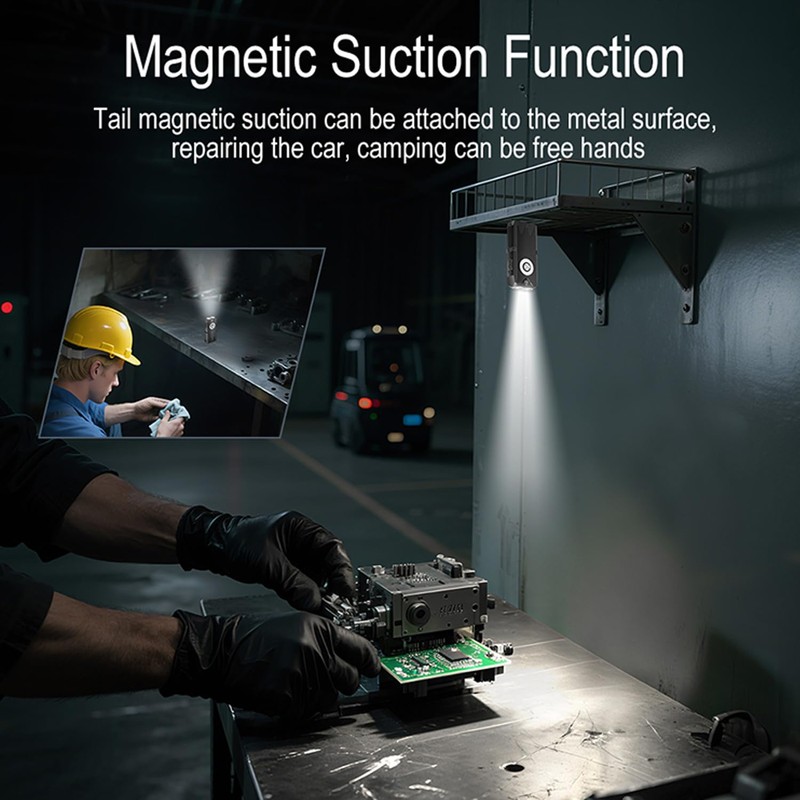 - Compact and Portable: As an EDC clip-on flashlight, it features a sturdy tactical clip for attachment to hat brims, backpacks, or belts. The magnetic tail cap adheres to metal surfaces, ensuring hands-free operation during repairs, construction work, or emergency tasks.