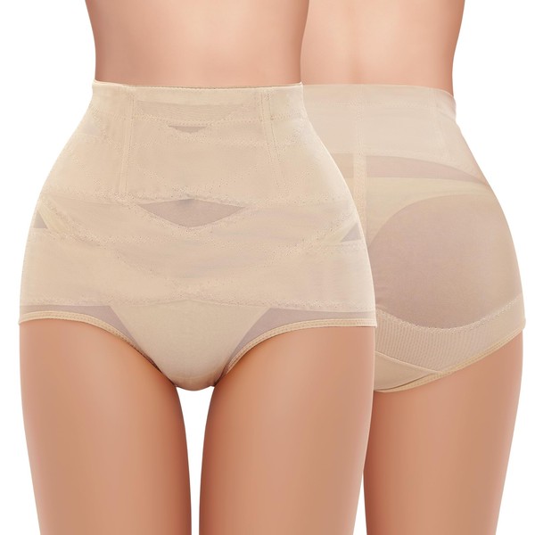 FANELIK Tummy Control Shapewear Panties for Women High Waisted Body Shaper Underwear Beige