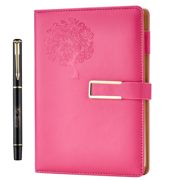Fanery Sue Tree of Life Refillable Writing Journal for Women&Men Faux Leather Hardcover Notebook A5 College Ruled 200 Lined Pages Lay-Flat Personal Diary with Pen&Magnetic Buckle (Hot Pink