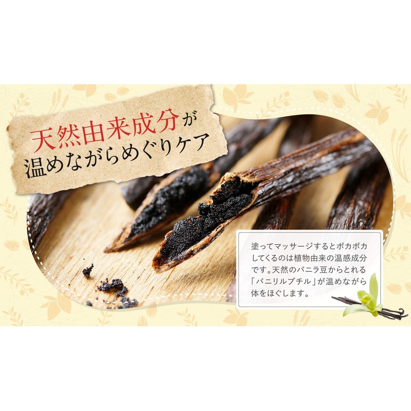 - (Natural Temperature Sensitive Ingredients for Gently Warming and Care) Vanillil butyl derived from vanilla beans warm up gently and smooths your body. It is also characterized by a higher lasting power than capsaicin known for its warming effect