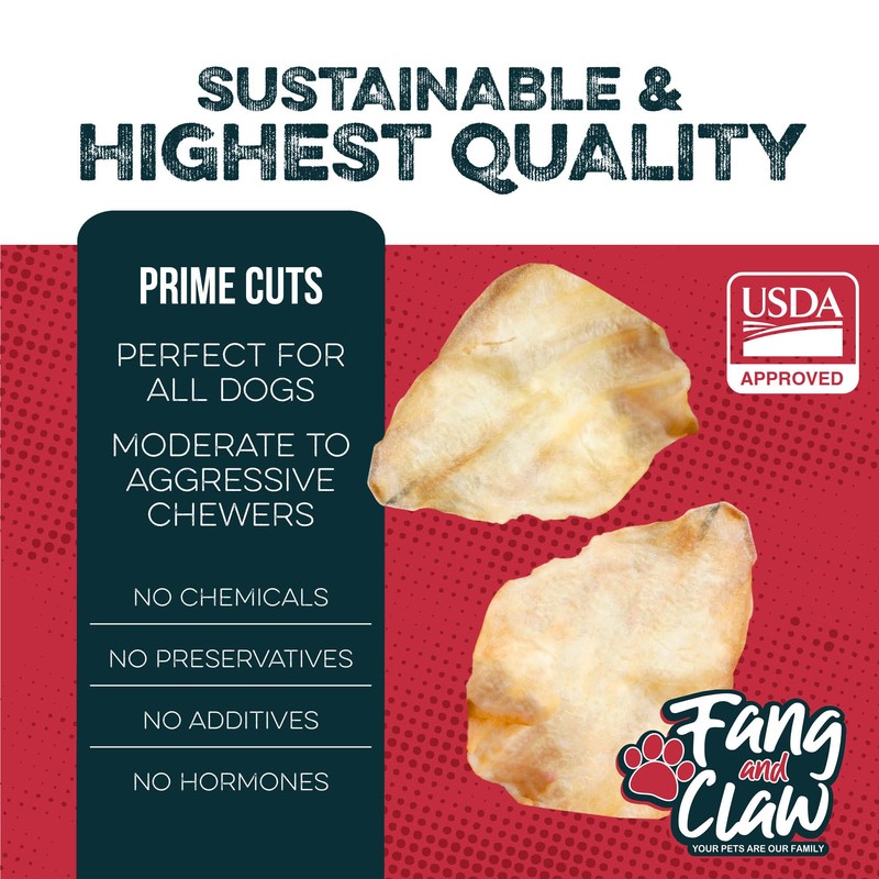 Fang & Claw Water Buffalo Ears for Dogs (100 Pack) - Free Range Grass Fed Low Calorie All Natural Dog Chews - Healthy Dental Chew Bone Alternative - No Rawhide Dog Chews - Long Lasting Natural Treats