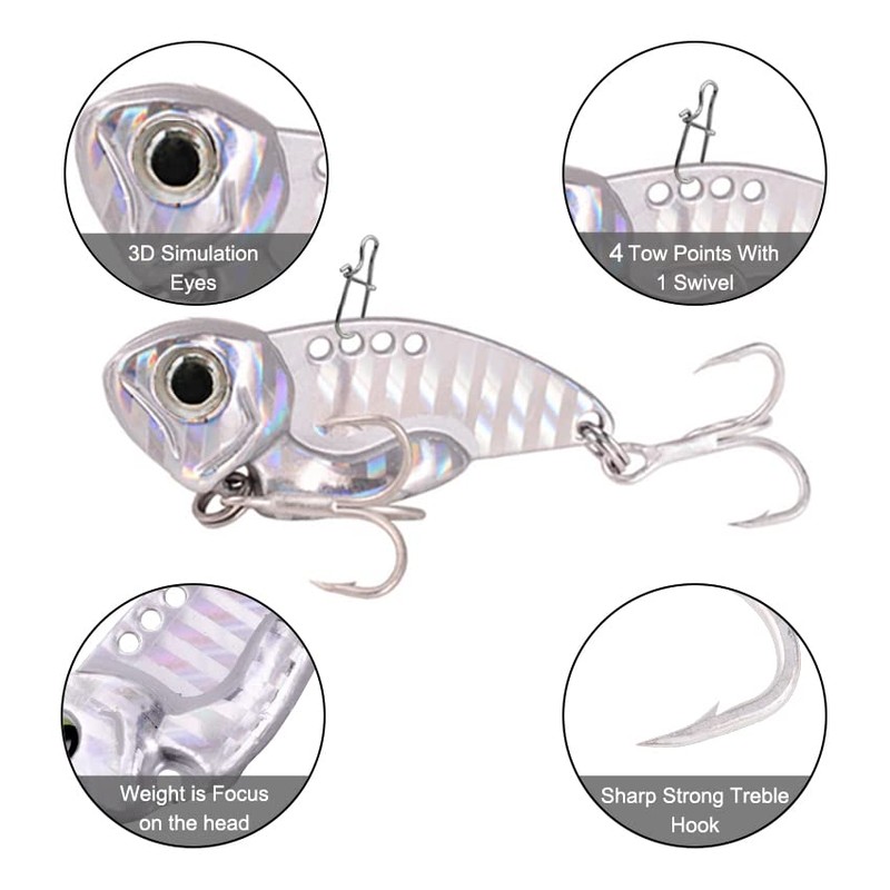 - VIVID VIBRATING ACTION - The VIB lure back has 4 tow points, with super strong swivel flatted stronger double ring. You can change tow points to suit the depth