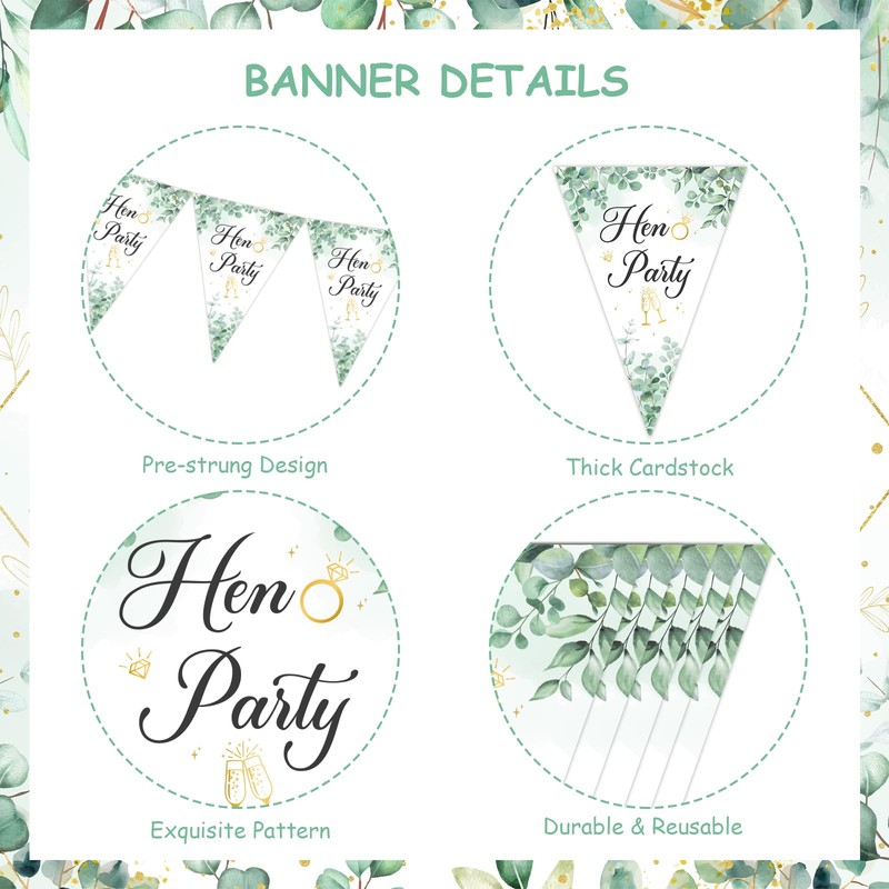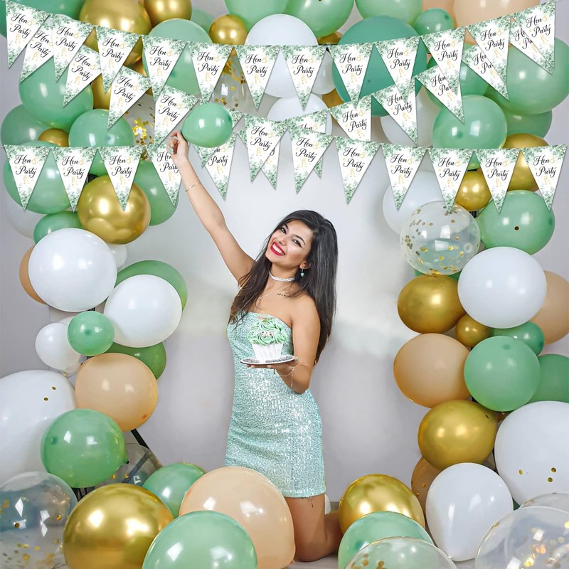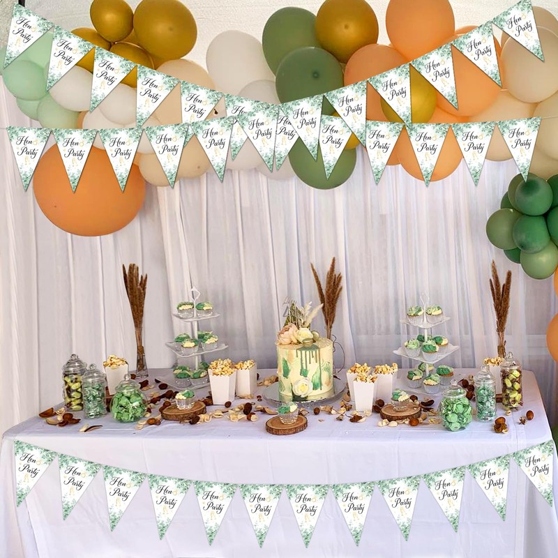 - Hen Party Decorations Sage Green: You will get 3 sage green hen party bunting banners and each banner contains 12 pennants(about 8*6 inches).