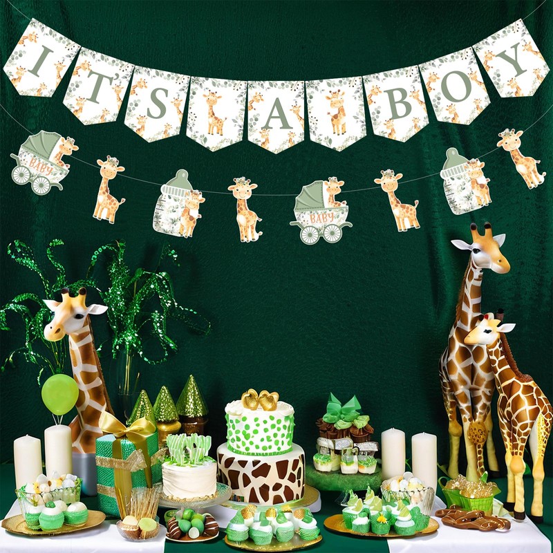 - Giraffe Baby Shower Decorations Sage Green: You will receive 1 sage green it's a boy banner, 1 sage green giraffe baby shower garland.
