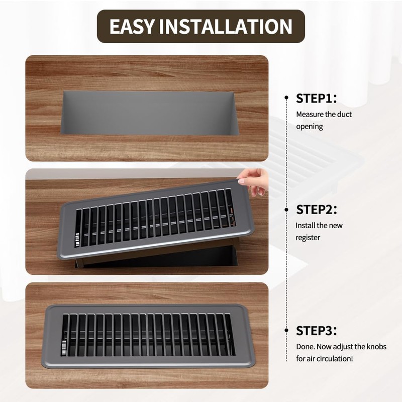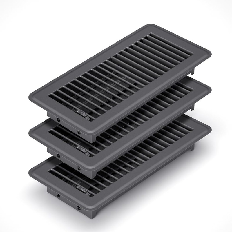 FanGoFast 4" x 10" (Duct Opening Size) Floor Register Dark Gray 3 Pack Premium Steel Easy Adjust Floor Vent Cover for Home