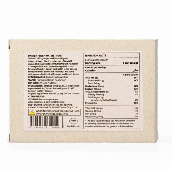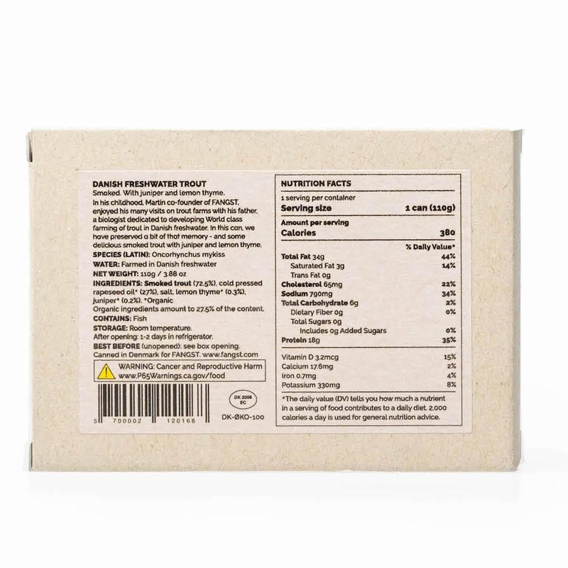 Fangst Regnbue Orred | Tinned Smoked Freshwater Trout with Juniper and Lemon Thyme | 10 x 110g