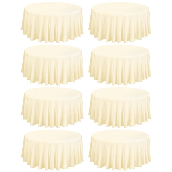 - 【Premium Tablecloth Fabrics】You can get 8 pieces 108 inch Ivory round tablecloth, our tablecloth is made of soft 180 GSM 100% premium polyester fabric that resists wrinkling for an always crisp, polished look. These materials are as skin-friendly as they are environmentally friendly. Perfect to protect and decorate your tables.