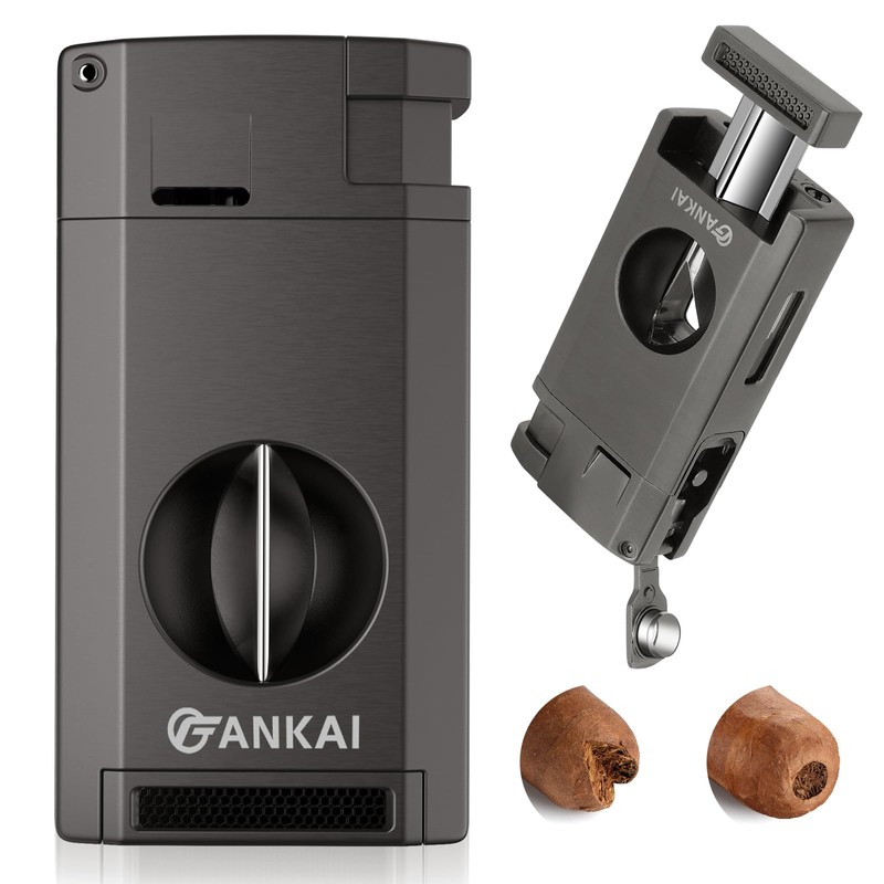 - Upgraded Deep V Cigar Cutter: This butane lighter features a deeper V cigar cutter than our previous model; Specifically designed for aficionados, this precision cutter effortlessly accommodates cigars with a ring gauge of up to 60;if you are a fast smoker,you tend to take quickly puffs and more exposed,the use of this V cutter is highly recommended