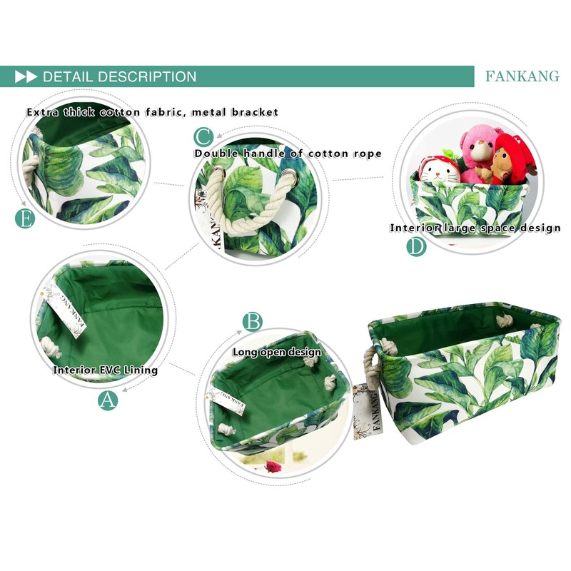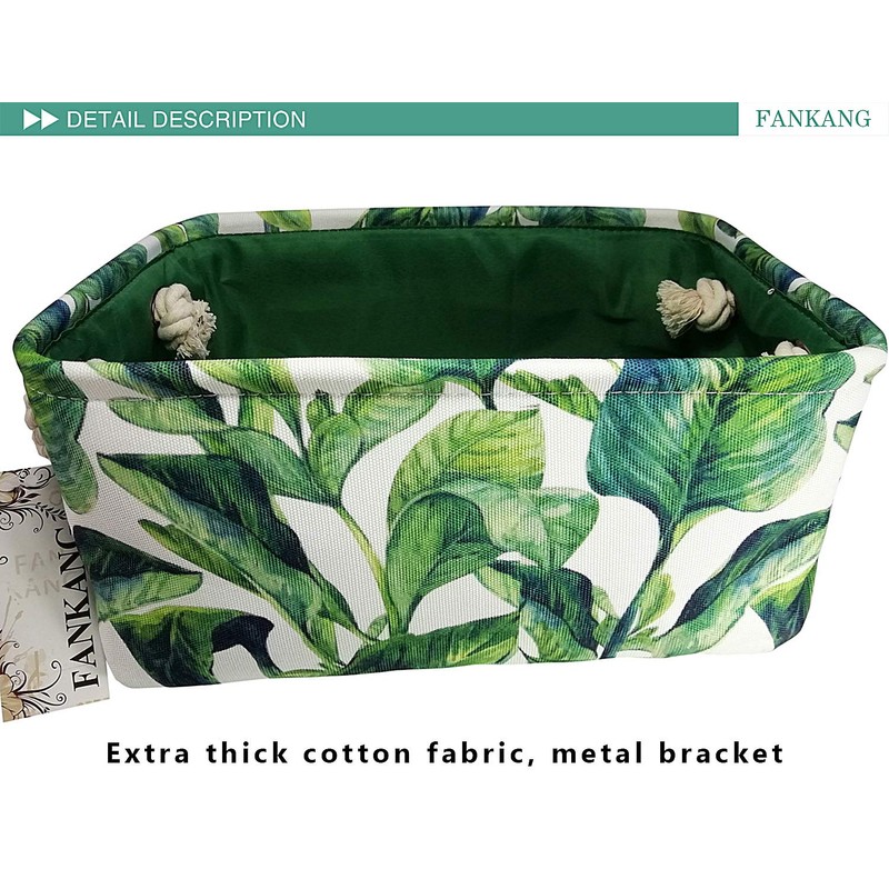 FANKANG Rectangular Laundry Basket Nursery Storage Fabric Storage Bin Storage Hamper,Book Bag,Gift Baskets (Green plant)