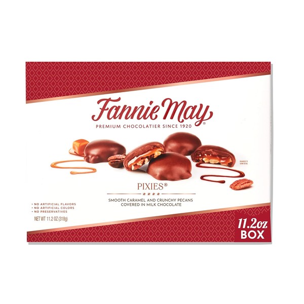 - GOURMET GOODNESS TO GO: Take Fannie May’s milk chocolate Mini Pixies anywhere with you, this caramel candy is made for premium snacking on-the-go