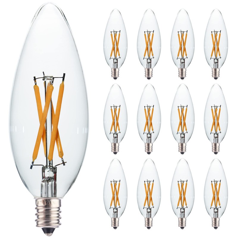 FANNIS 12 pcs C32 Candle Filament LED Bulb, Soft Warm White Light 4W Equals 40W, E12 Candelabra Base Edison Bulb, Clear Glass Light Bulb for Pendant Chandelier Ceiling Fan