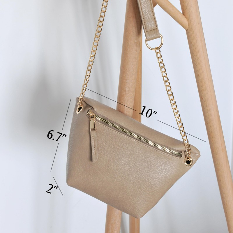 Fanny Pack for Women Vegan Leather Cross body Chain Belt Purse Chest Bag Bum Hip Waist Pack for Travel Outdoor Hiking (Nude)