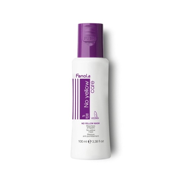 Fanola No Yellow Mask 100ml Travel Size is an after-care regimen created to restore health and vitality to bleached, blonde, streaked or grey hair by toning yellow and brass reflections with its special violet pigment. The acid pH of the mask seals the cuticle and creates a protective violet film on the hair that rejects yellow reflections, while its enriched extracts of Pressed Grape and Silk Proteins make the hair highly conditioned, nourished, hydrated and soft. What are the benefits and features of Fanola No Yellow Mask 100ml Travel Size? Tones yellow and brass reflections in blonde hair with its special violet pigment. Seals the cuticle and creates a protective violet film on the hair that rejects yellow reflections with its acid pH. Enriched with extracts of Pressed Grape and Silk Proteins to make hair highly conditioned, nourished, hydrated and soft. Perfect for after-care regimen to restore health and vitality to bleached, blonde, streaked or grey hair. Comes in a convenient 100ml travel size. Who is Fanola No Yellow Mask 100ml Travel Size for? This product is perfect for those who want to maintain their blonde hair's health and vitality while toning yellow and brass reflections with a highly conditioning and nourishing after-care regimen.