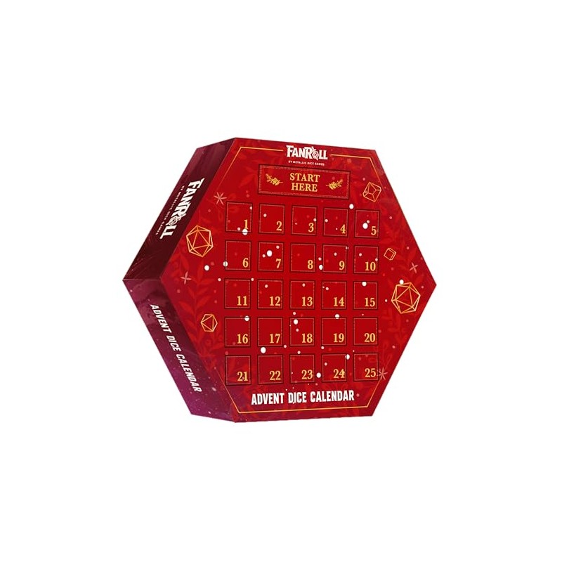 - Tis the season to roll with Santa! Our FanRoll advent calendar has 25 days of dice madness and includes: -One Exclusive set of Inclusion Dice (Holiday Themed) -Two full sets of assorted dice (d4, d6, d8, d10, d12, and d20) -One Exclusive Mini Set -One Exclusive Metal 20-sided die -A holiday themed FanRoll dice bag to carry your loot!