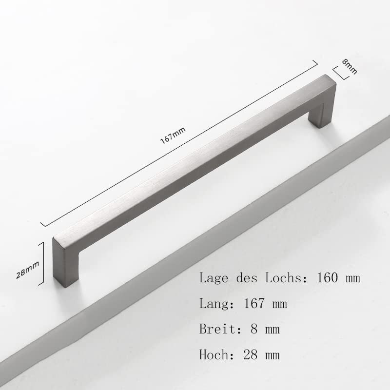Fanruier 10 Pieces Square Brushed Black Aluminium Alloy Cabinet Door Handle, Kitchen Cupboard, Drawer, Wardrobe, Pull-Out Handle (Nickel, 160 mm)