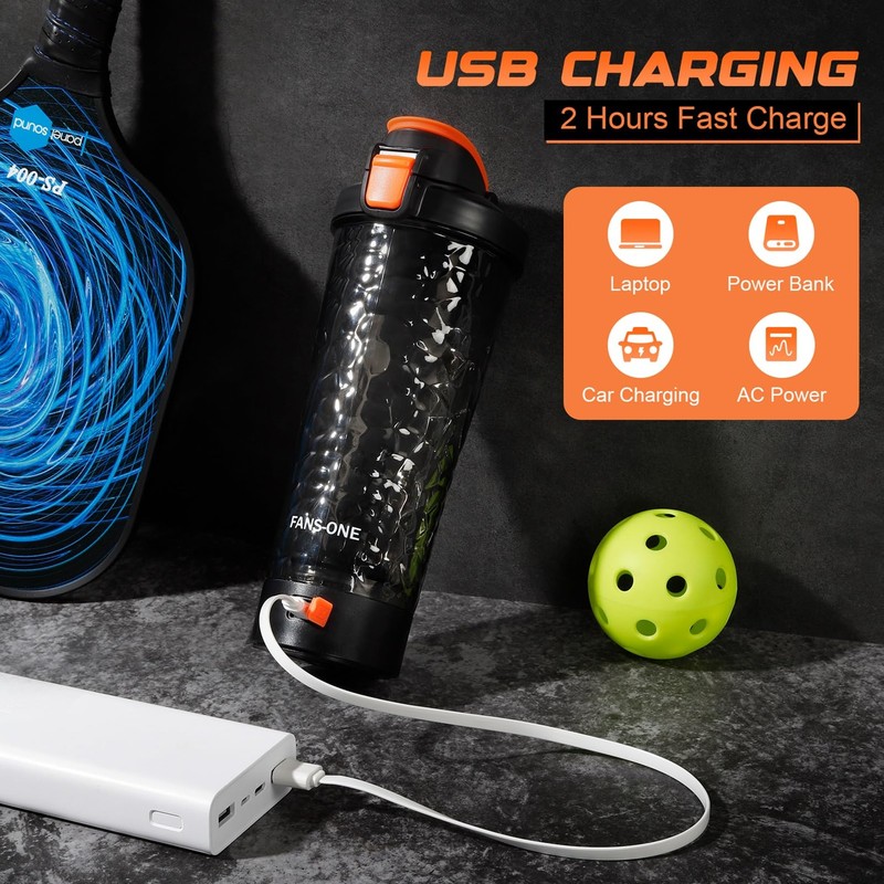 - Large Capacity & Portability: With a 24oz capacity, the FANS-ONE shaker bottle holds up to 16oz of liquid and 3 scoops of protein powder-perfect for your fitness needs. Designed for convenience, it features a detachable motor base and a sturdy carrying loop, making it easy to take with you to the gym or on the go. Enjoy a protein shake anytime, anywhere for a quick energy boost