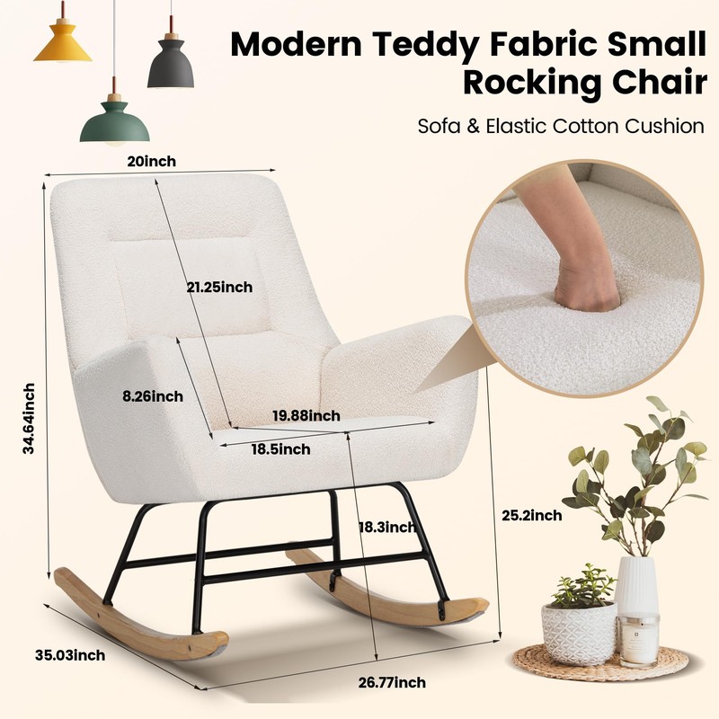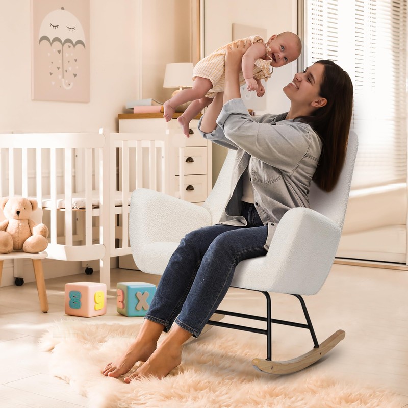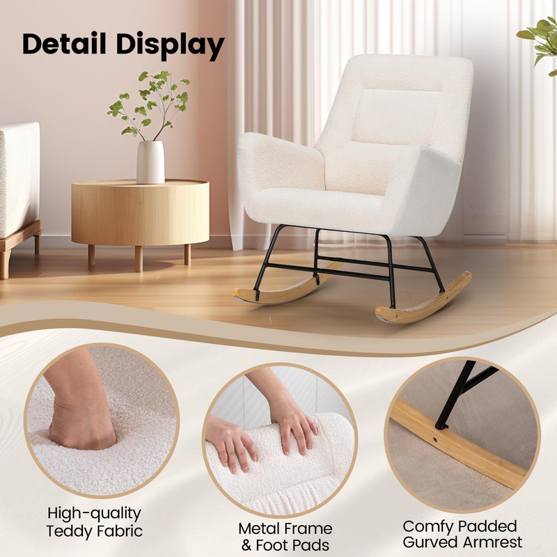 FansaFurn Rocking Chair Nursery, Reading Chair Modern Rocking Accent Chairs Glider Recliner, Teddy Upholstered Glider Rocker with High Backrest,for Living Room, Nursery, Bedroom