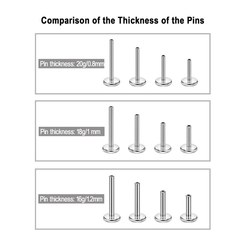• Some push pins are bent in advance, if you found the push pin are straight, Pls BEND THE PIN SLIGHTLY following the second photo to learn how to use threadless labret. This labret stud is sold by piece!
