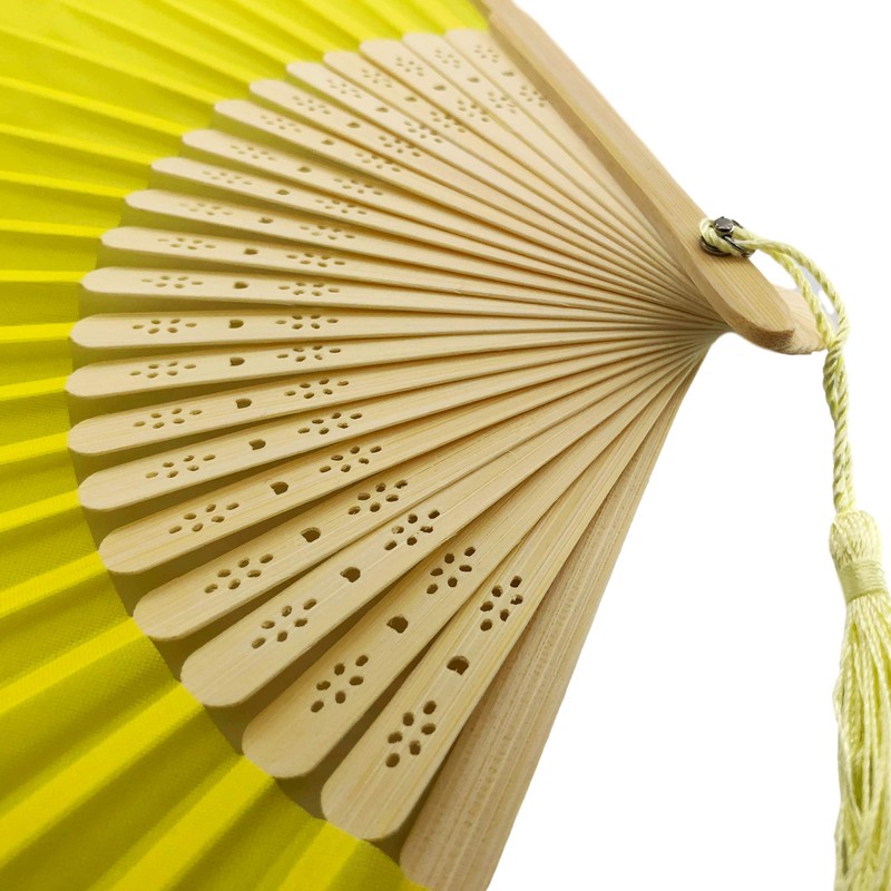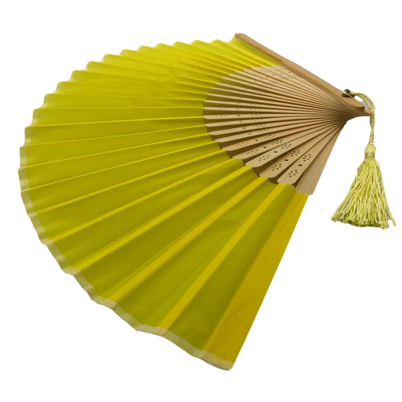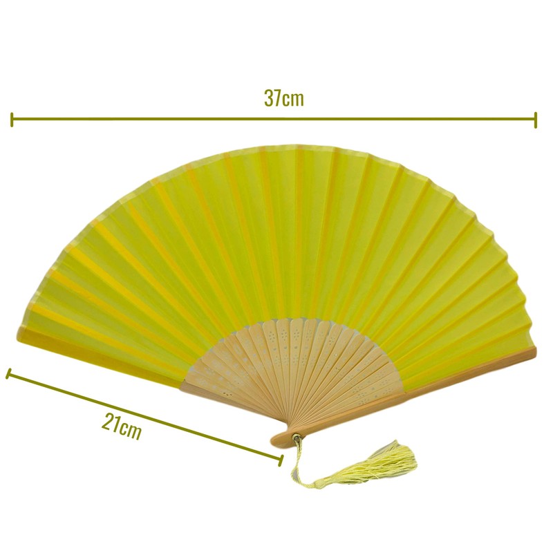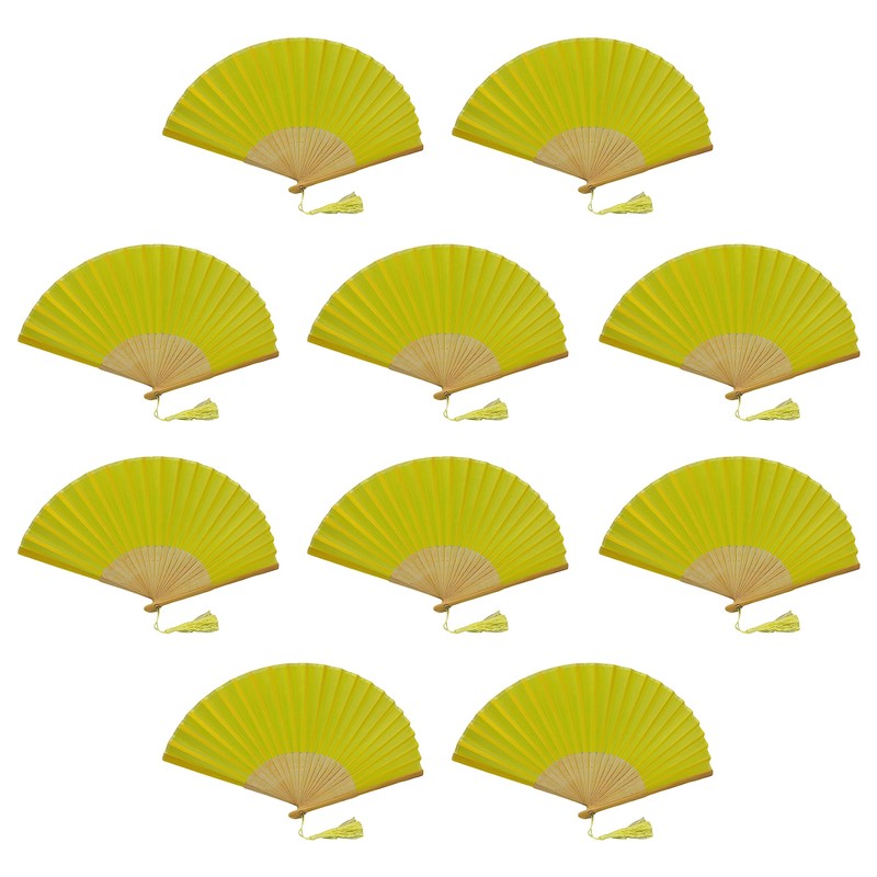 FANSOF.FANS Pack of 10 Fabric Handheld Fan with a Tassel Grade A Bamboo Ribs Party wedding Favour (Lemon Yellow)