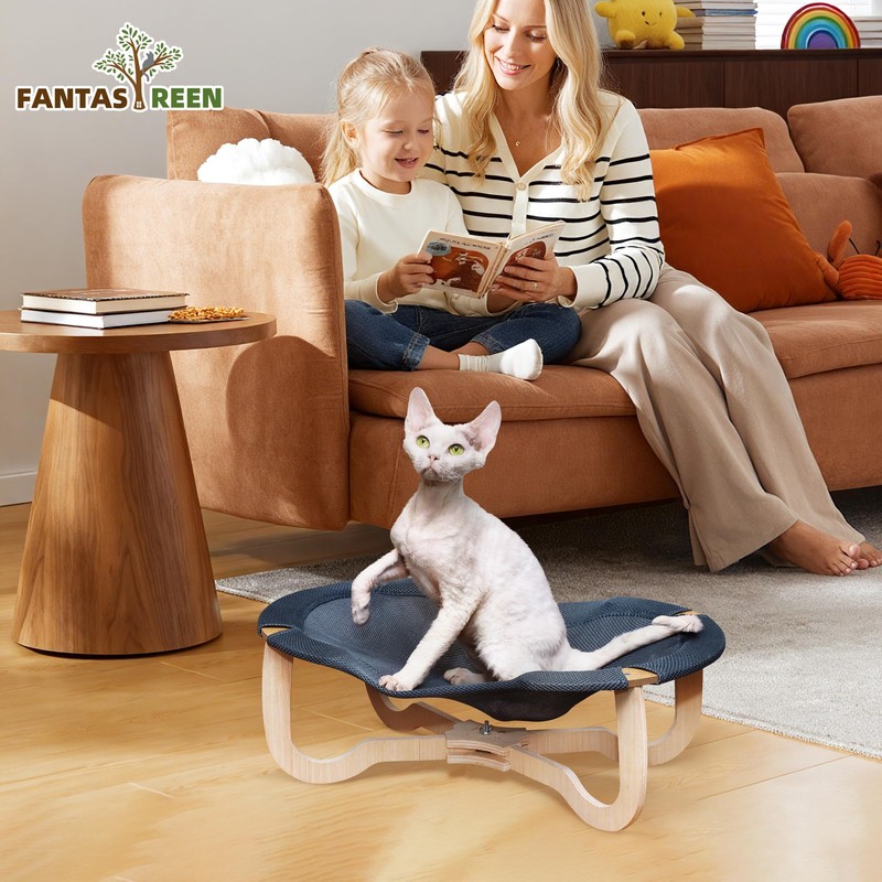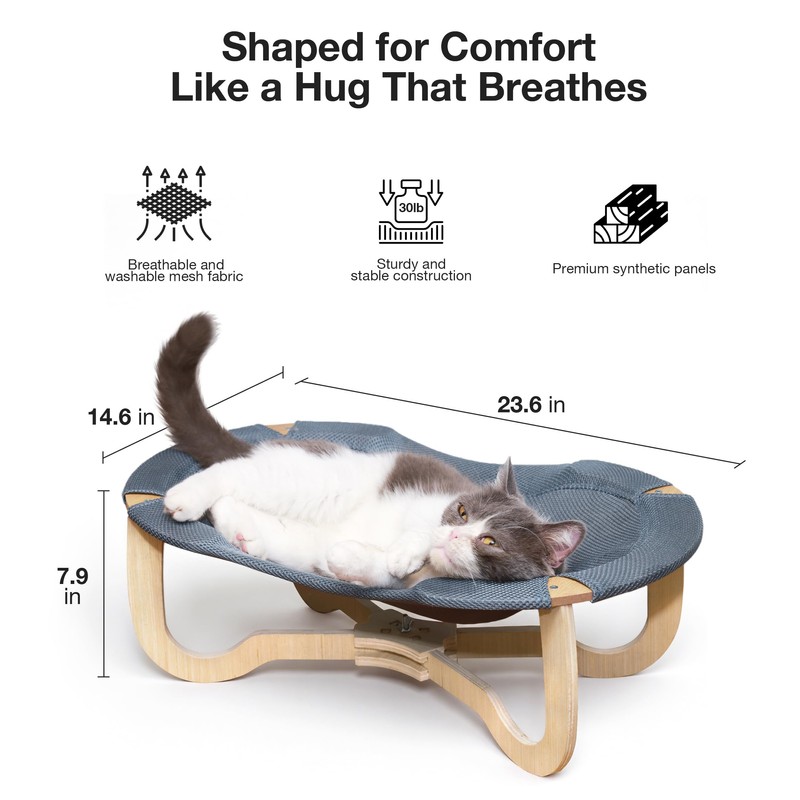 Fantasreen Wooden Elevated Cat Bed Hammock Breathable Scratch-Resistant Grey ...