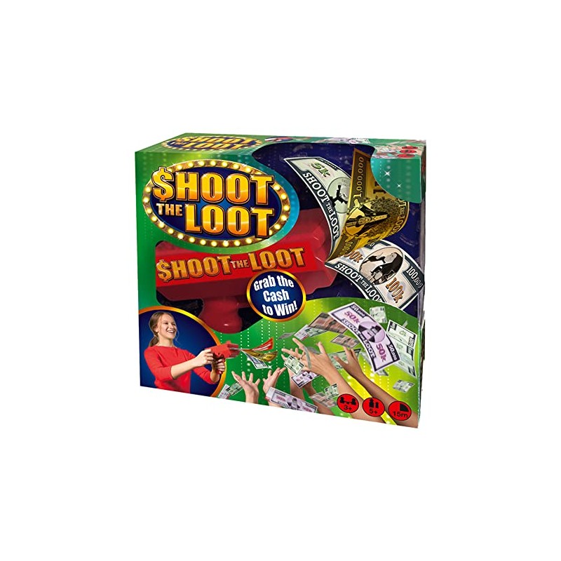 • SHOOT THE LOOT, GRAB THE CASH: A party game that’s all about snatching money out of the air and getting rich quick.
