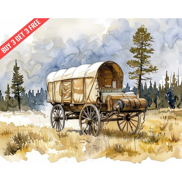 Fantasy Covered wagon in countryside 8x10 Print