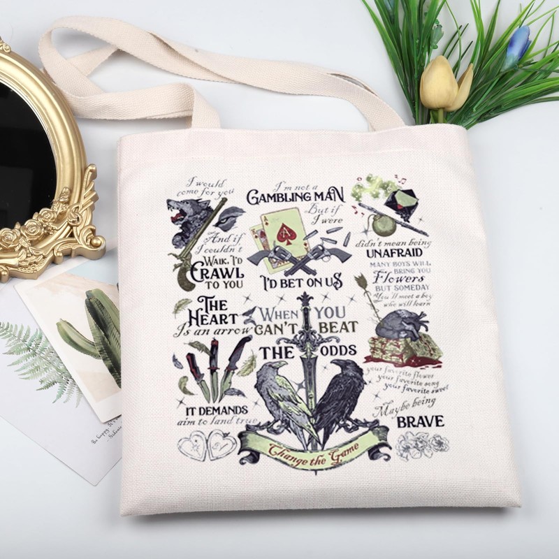 Fantasy Crows Novel Merchandise Tote Bag Ketterdam Crow Club Shoulder Bag NMNF Gift Shadow And Bone Gift For Bookish Bookworm, Beat Odds Tragetasche, 35*40cm