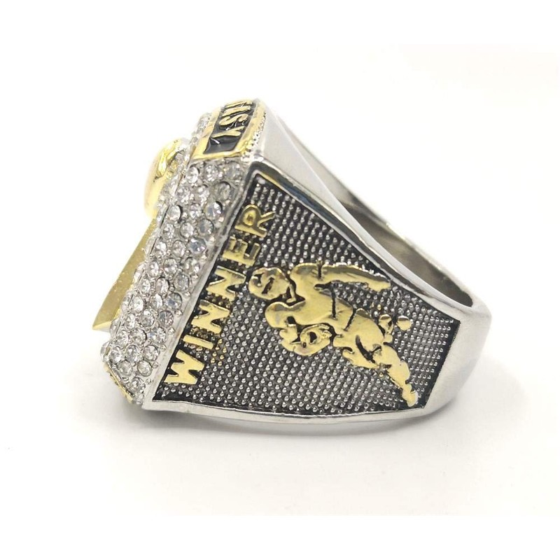 - The ring weighs 75 grams,Silver & Gold colours Three dimensional Trophies