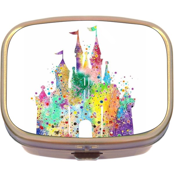 Fantasy Princess Castle Watercolor Brass Rectangle Pill Box