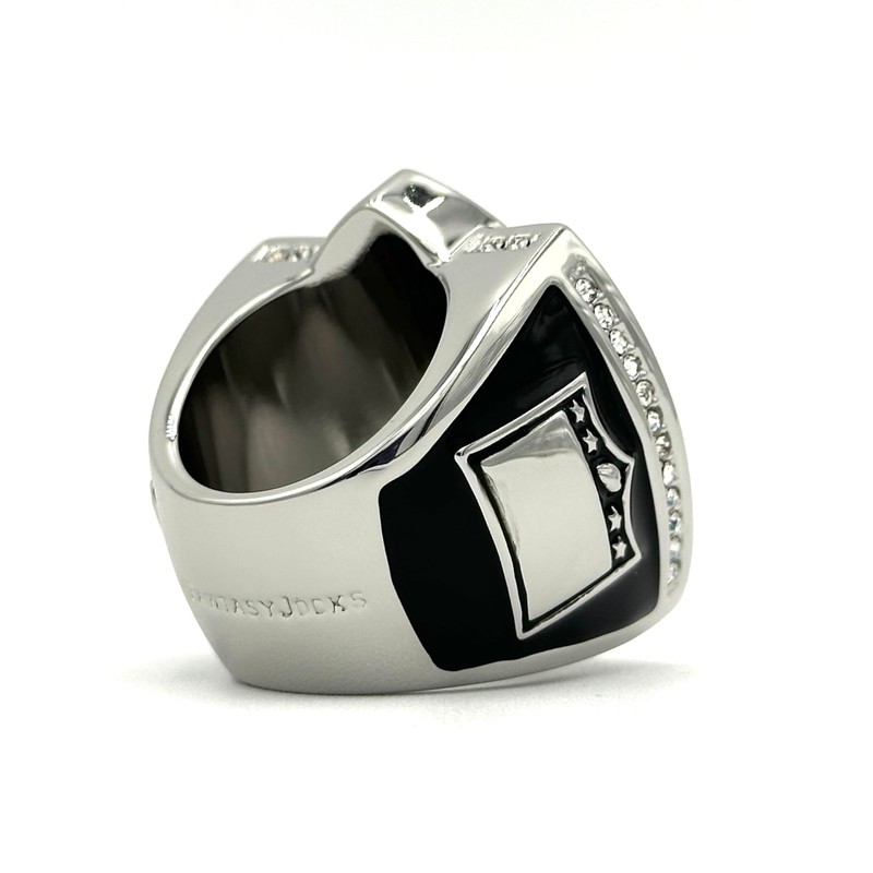 FANTASYJOCKS Fantasy Football Championship Ring Double Down FFL Champion Trophy Award Prize Silver Black Glass Stones Sports Size 13