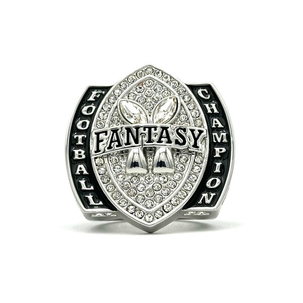 Introducing the Double Down Fantasy Football Championship Ring - the ultimate accessory for champions of the gridiron! This fantasy football ring is not just any ordinary piece of jewelry - it's a symbol of your dominance in the fantasy football world. Crafted with the finest materials, this fantasy football championship ring is silver plated and encrusted with rhinestone football trophies on the front. With a weight of 46 grams, it feels substantial on your finger, reminding you of your glory days on the virtual field. Available in sizes 9 through 13, the Double Down Fantasy Football Championship Ring is perfect for any finger, big or small. And when you're not wearing it to show off to your friends and fellow fantasy football enthusiasts, keep it safe and sound in the included FantasyJocks Fantasy Football Ring Box. So what are you waiting for? Don't just settle for bragging rights - show off your championship pedigree with the Double Down Fantasy Football Championship Ring! *Please note that we are not able to customize rings at this time, but offer an Acrylic Display case option that you can custom laser engrave!