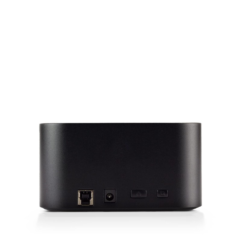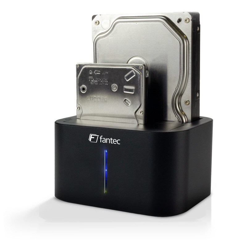 - Quick disk change without tools, LEDs for connection status and clone progress